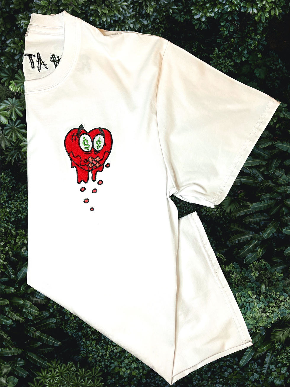 100% Pima Cotton "Designer Rixh Black Tee" Red Heart | Chenille fabric Patch | Premium | Luxury | Soft